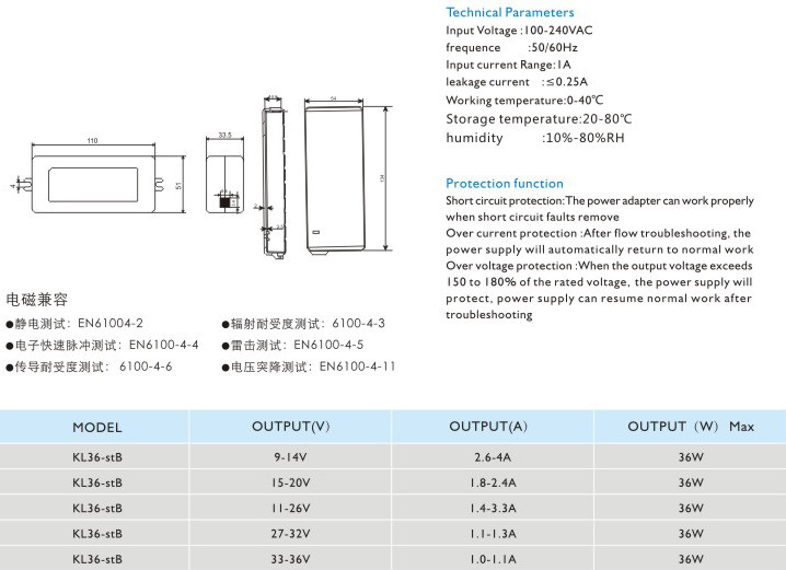 短路保護(hù):電源適配器在短路解除時(shí)能正常工作恢復(fù)